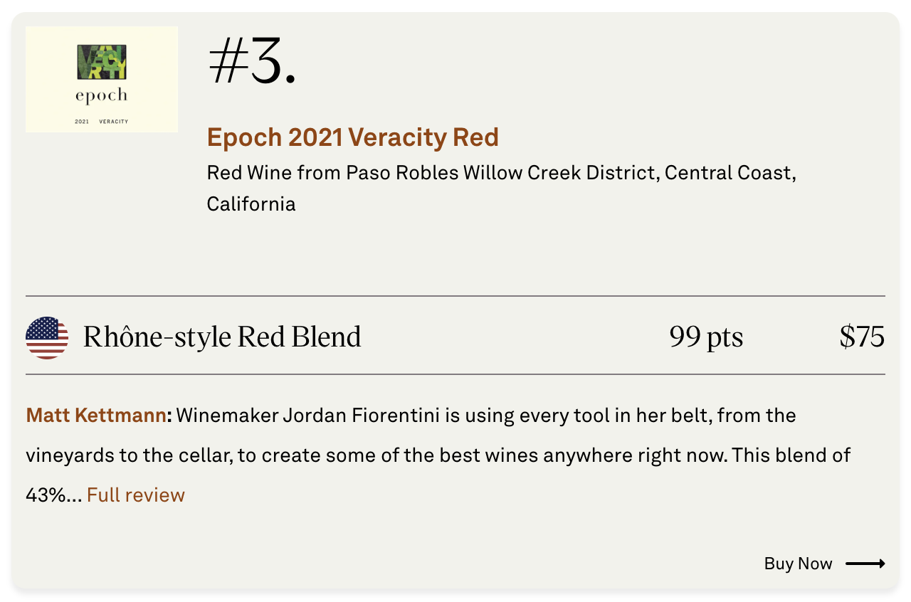 The Enthusiast 100: Wine Enthusiast’s Best Wines of 2024 2021 Veracity Selected as #3!