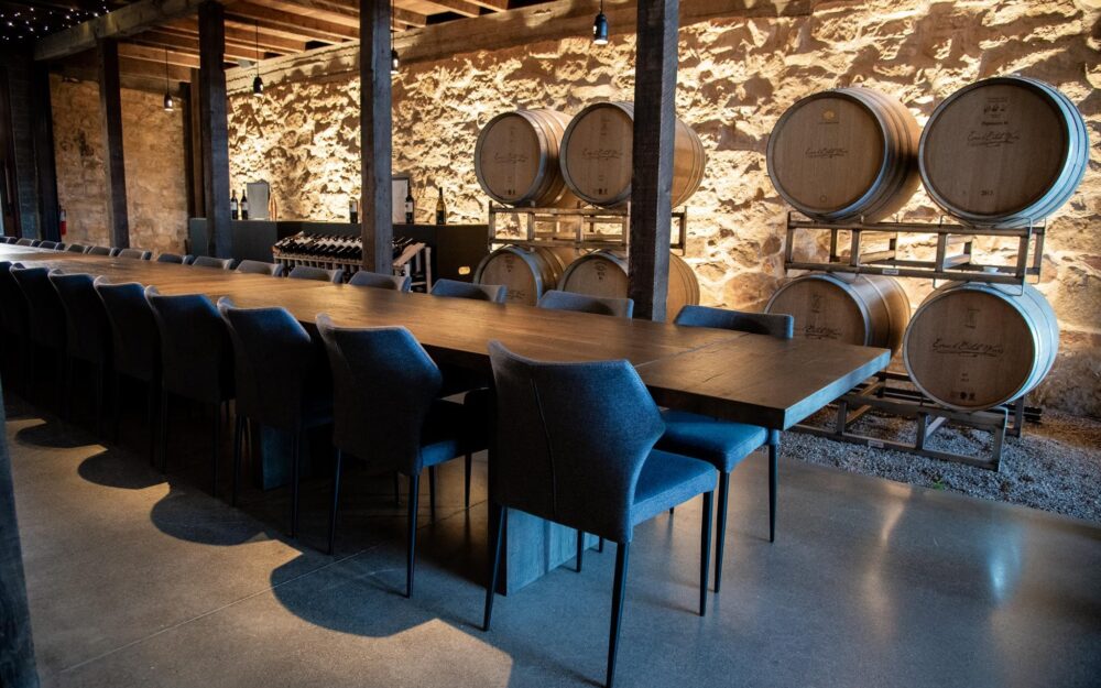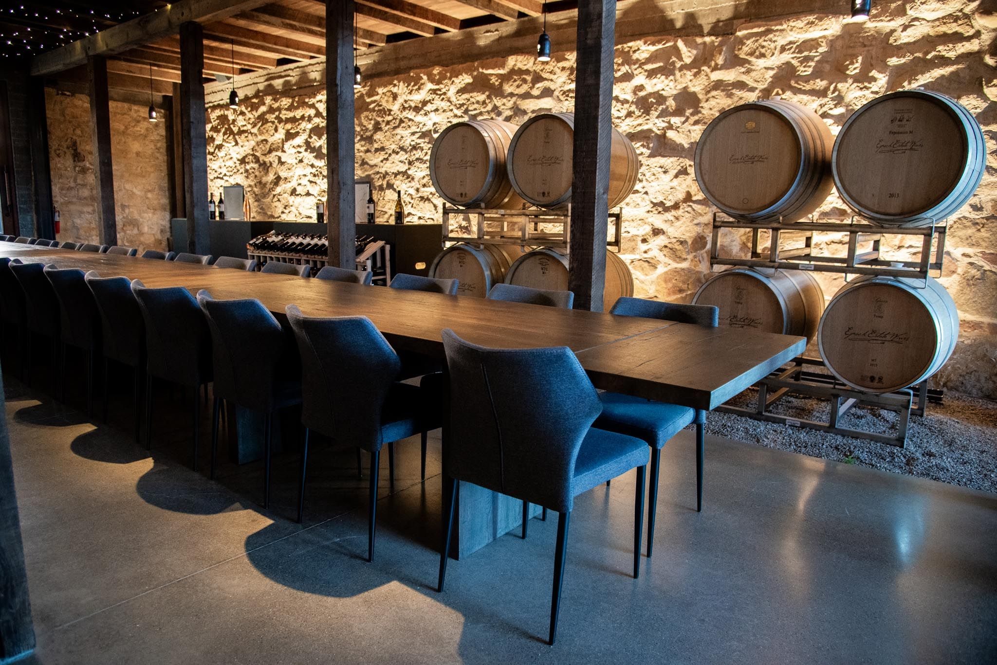 A full reconstruction of York Mountain Winery by Lake Flato Architects and B.K Architect LLC breathes new life into the design, while honoring the historic integrity of the site. This includes the careful and loving preservation of the original redwood beams as well as the bricks that were fired on property in 1906. These bricks along with the stones from the original cellar have been incorporated back into the structure with perfect precision. A basket press that was once used by the York brothers now sits amongst the rafters to replicate the original positioning which allowed gravity to bring juice from the crushed grapes to the main floor. This modern-meets-rustic space showcases and celebrates the York Legacy as it simultaneously beckons the future of Epoch.